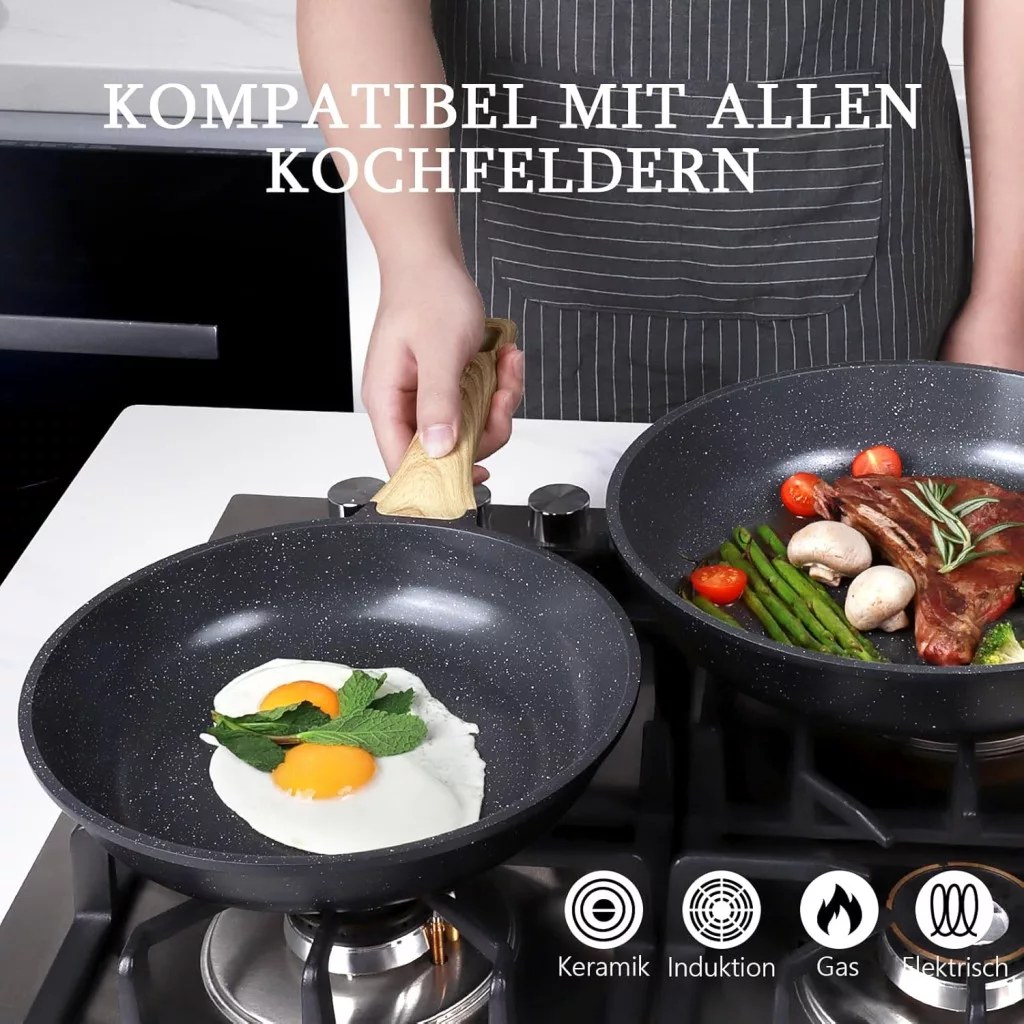 Az egyenletes hőeloszlás biztosítja, hogy az ételek egyenletesen süljenek meg, anélkül, hogy megégetnék őket. A nem tapadó bevonat lehetővé teszi az egészségesebb főzést, mivel kevesebb olaj vagy vaj szükséges az ételek elkészítéséhez.