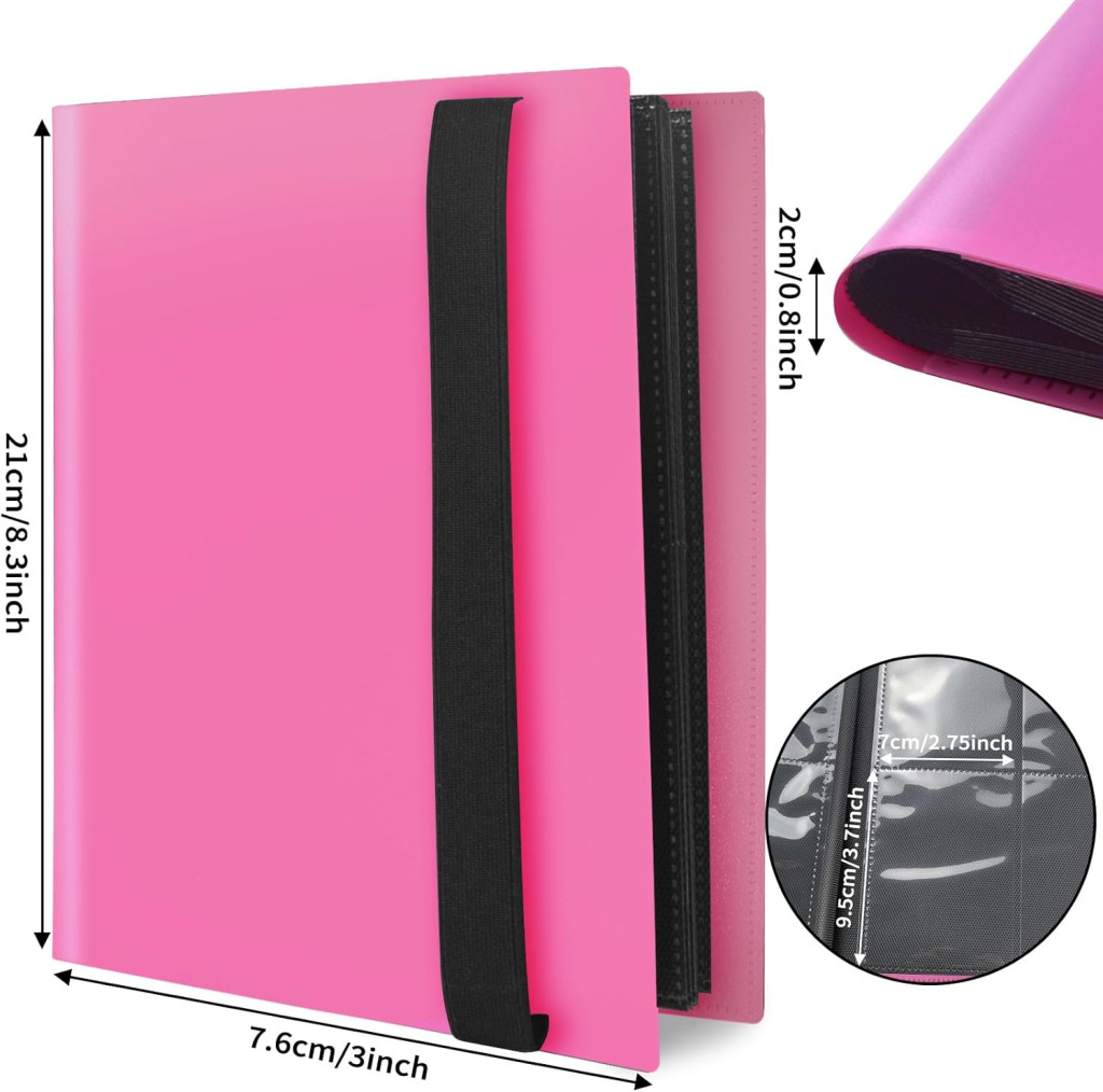 Az album 360 zsebbel rendelkezik, amely 20 oldal × 9 zseb elrendezésben van szervezve. A vízálló, porálló és erős PP anyag garantálja a hosszú élettartamot és a kártyák biztonságát. Az elastikus szalag biztosítja, hogy a kártyák nem esnek ki, és az album szorosan zárva marad.