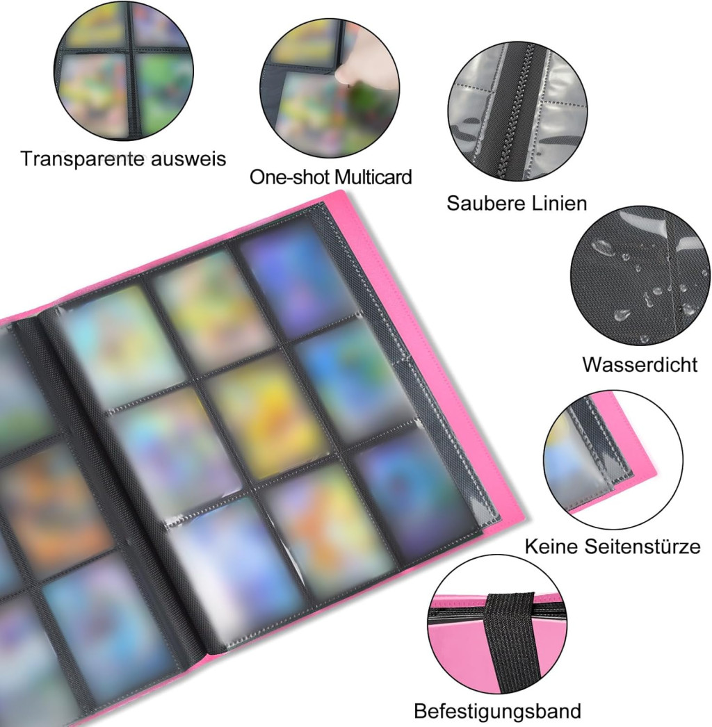 A 360 zseb kapacitása azt jelenti, hogy hosszú ideig gyűjthetsz anélkül, hogy új albumra lenne szükséged. Az elastikus szalag zárás biztosítja, hogy a kártyák nem esnek ki, még akkor sem, ha az albumot gyakran hordozod. A vízálló borító védi az albumot a mindennapi használat során fellépő szennyeződésektől és nedvességtől.