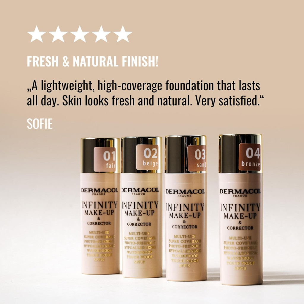 Make-up a korektor Dermacol Infinity je perfektnou voľbou pre tých, ktorí hľadajú profesionálnu kvalitu a dlhotrvajúce krytie. Či už ide o každodenné líčenie alebo špeciálnu príležitosť, tento produkt vás zaručene nesklame.