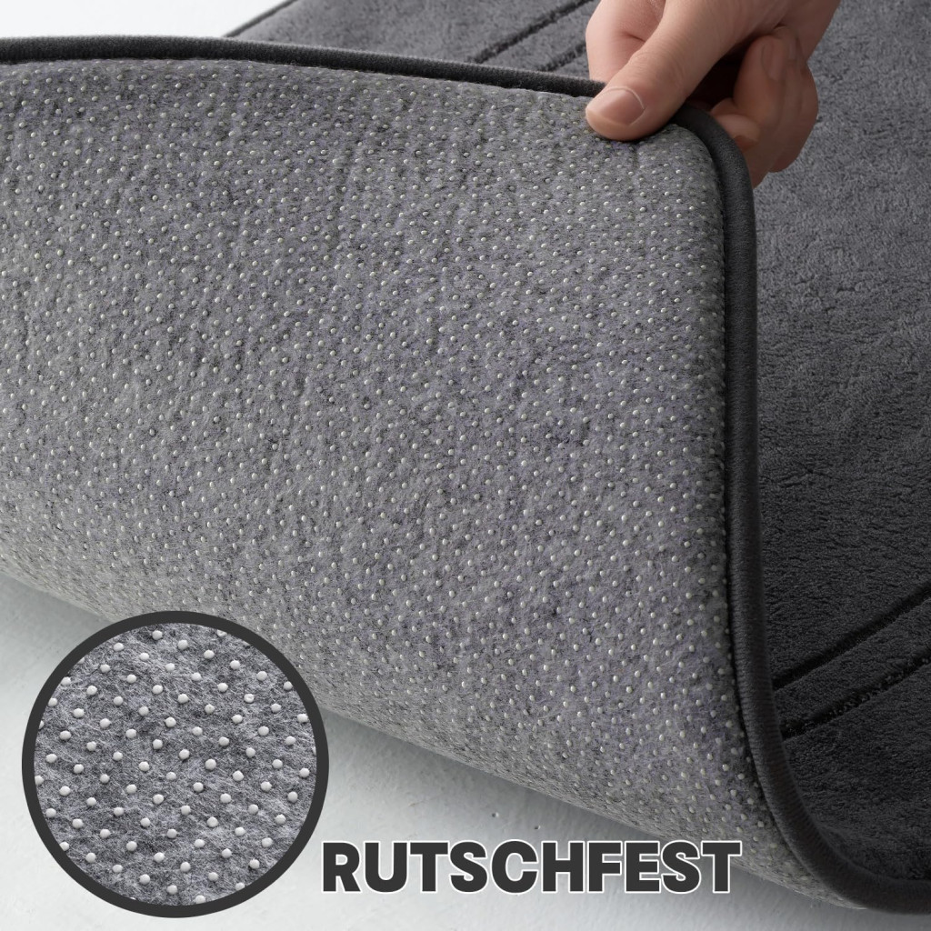 A chakme fürdőszobai szőnyeg szett egy prémium minőségű, 3 darabos megoldás, amely tökéletes választás a modern fürdőszobák számára. Ez a szett magában foglalja a nagyobb fürdőszobai szőnyegeket és egy speciális U-alakú WC szőnyeget, amelyek mind memóriahabos anyagból készülnek. A sötétszürke szín elegáns és praktikus, könnyen illeszkedik bármilyen fürdőszoba dekorációhoz.