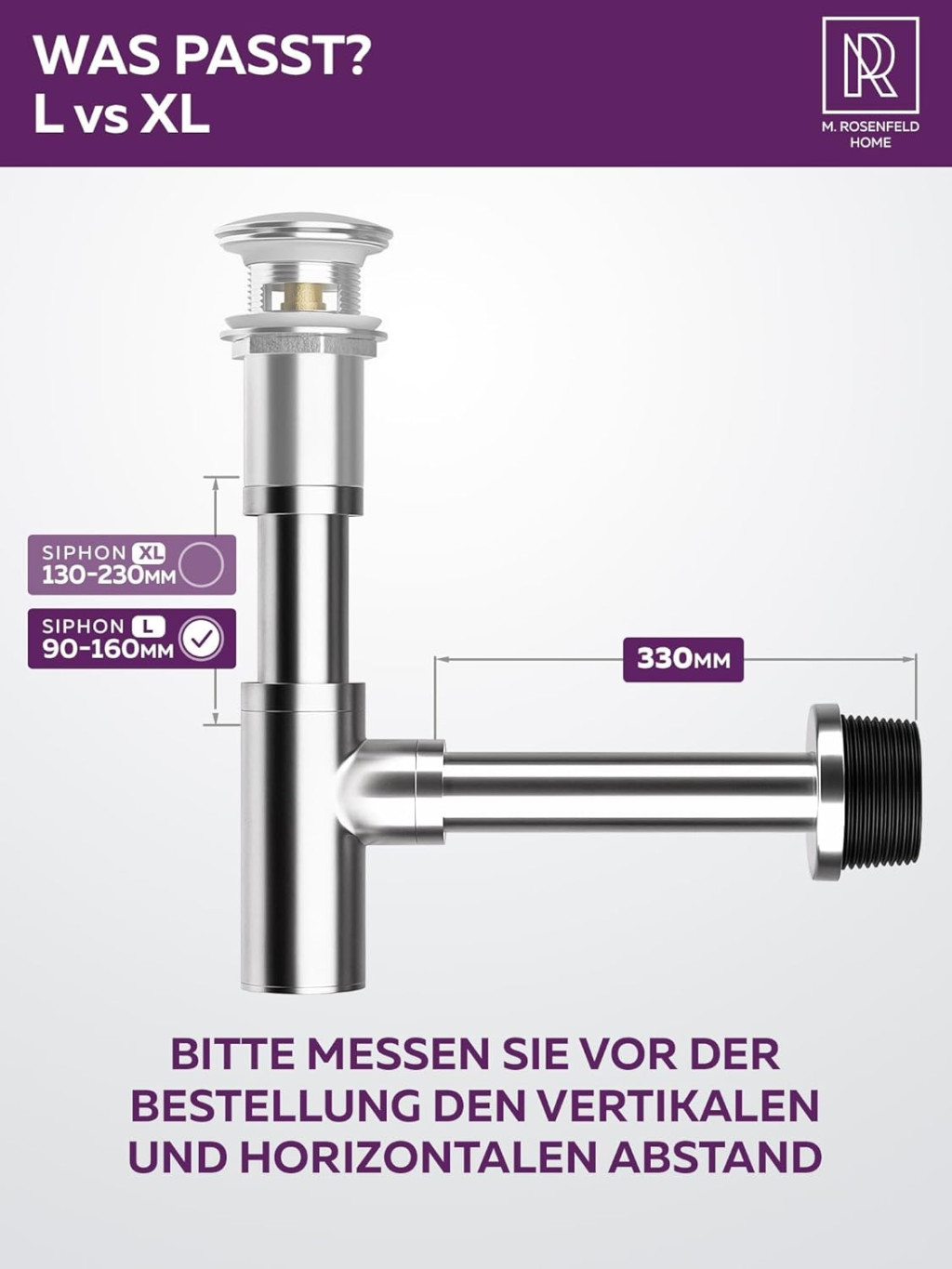 A M. ROSENFELD HOME szifoncsap a minimalista dizájn, a német minőség és az egyszerű karbantartás kombinációja. Ez a termék tökéletes választás azok számára, akik értékelik a stílust, a megbízhatóságot és a funkcionalitást. Legyen szó fürdőszoba felújításról, régi szifoncsap cseréjéről vagy új telepítésről, ez a szifoncsap minden igényt kielégít.