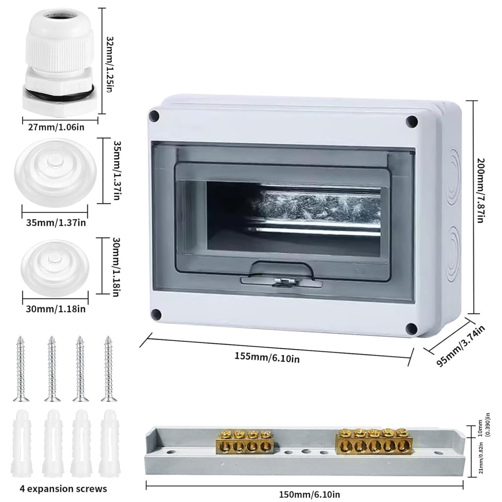 Az elosztódoboz 8 modul befogadására alkalmas, amely lehetővé teszi a különféle biztosítékok, kapcsolók és egyéb elektromos modulok integrálását. A felületre szerelt kialakítás miatt nincs szükség falvágásra vagy bonyolult előkészítésre.