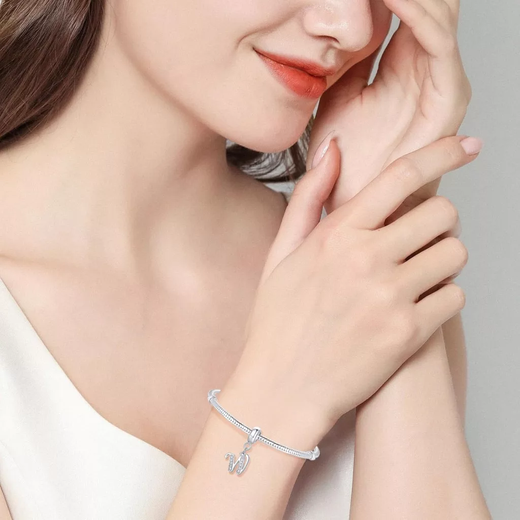 Prívesok s písmenom W zo striebra rýdzosti 925 – korálikový prívesok kompatibilný s európskymi náramkami a náhrdelníkmi pre ženy