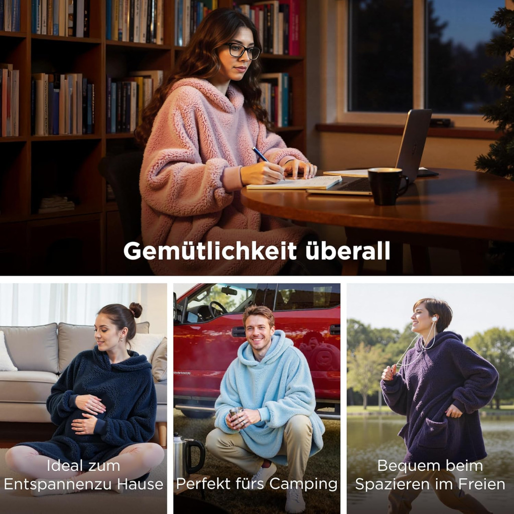 A BEDSURE kapucnis takaró ujjakkal egy forradalmi megoldás azoknak, akik a maximális kényelmet és melegséget keresik. Ez nem csupán egy takaró – ez egy teljes körű ölelés, amely követi téged a kanapéról az ágyba, a munkaszobáig vagy akár a kültéri pihenésig. A 300 g/m² súlyú, felhő-puha sherpa bélés garantálja, hogy soha nem fogsz hidegre panaszkodni, miközben a prémium anyag biztosítja a bőrbarát, irritációmentes viseletet.