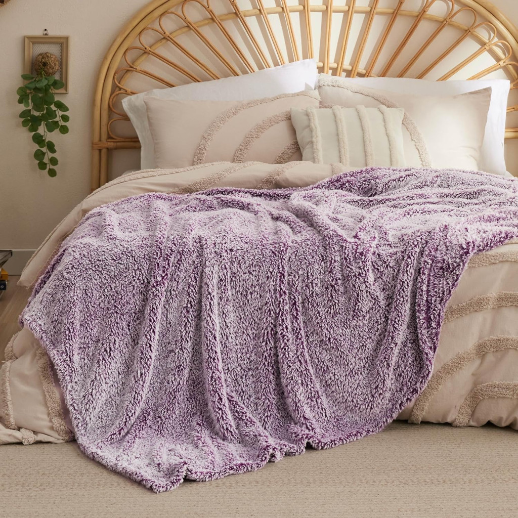 BEDSURE Fialová Mäkká Deka na Pohovku - Hrejivý Sherpa Prehoz 150x200 cm