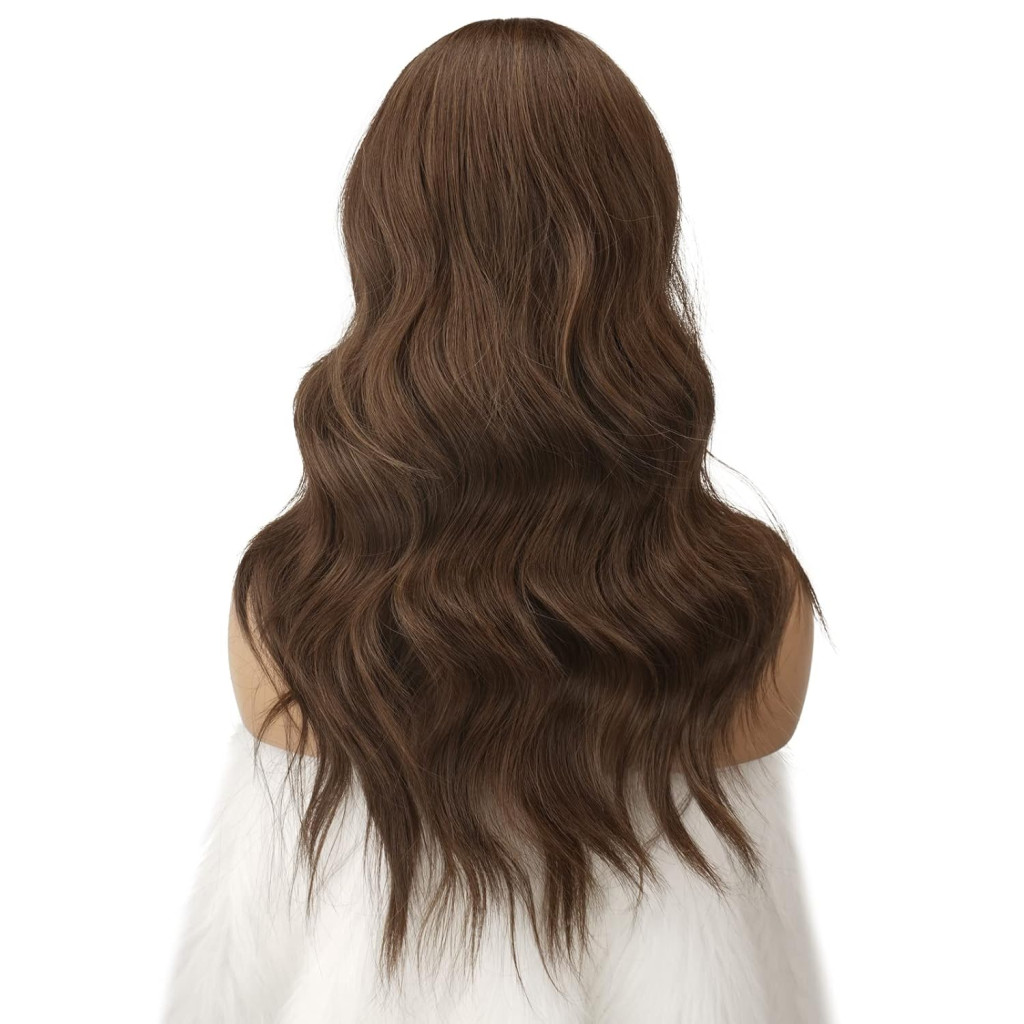 FESHFEN dlhá hnedá kučeravá parochňa 60 cm so stredovou cestičkou, dámska syntetická vlnitá