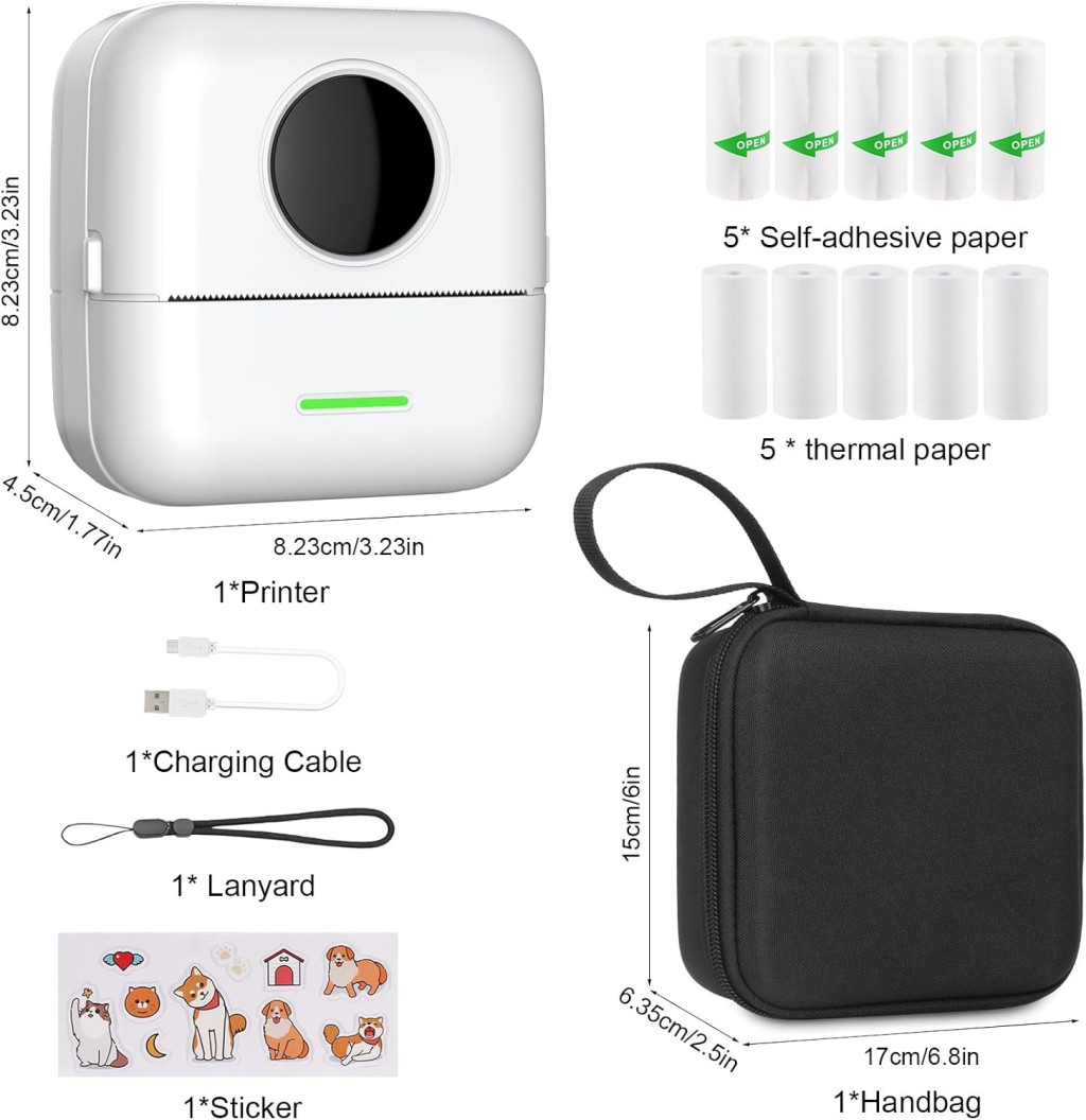 Táto mini fototlačiareň je perfektnou voľbou pre tých, ktorí majú radi inovatívne technológie a prenosnosť. Elegantný biely dizajn, spoľahlivá technológia termotlače a dlhá výdrž batérie zaručujú, že budete mať vždy po ruke spoľahlivé tlačové zariadenie. Bezplatná aplikácia ponúka množstvo kreatívnych možností, od tlače fotografií až po osobné poznámky. Priložená taška a 10 roliek papiera zabezpečia, že môžete začať používať zariadenie ihneď. Ideálny darček pre študentov, kancelárskych pracovníkov a každého, kto si rád dokumentuje životné momenty.