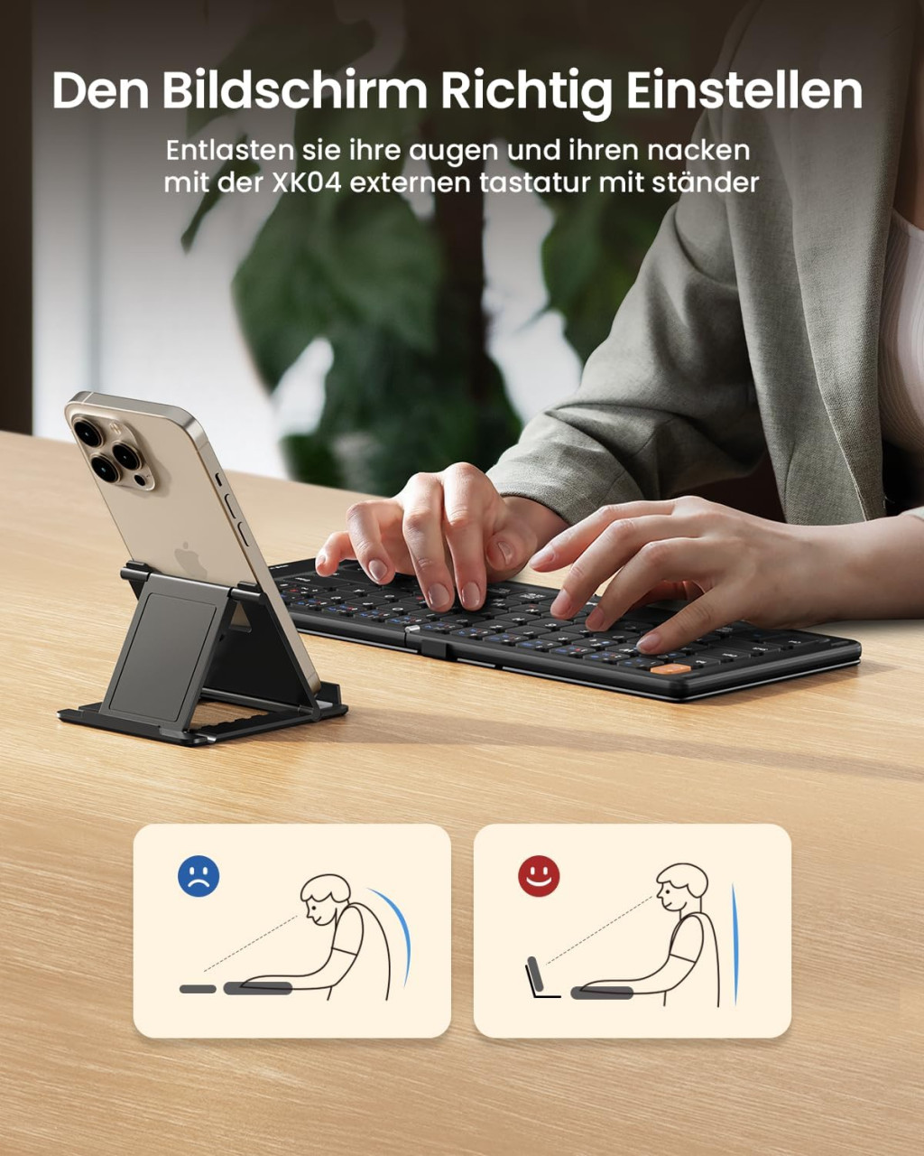 ProtoArc XK04 Összecsukható Kompakt QWERTZ Bluetooth Billentyűzet PU Bőrtokkal - Hordozható Mini Utazó Klaviatúra iPad iPhone Mac Android Wi