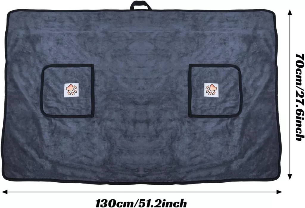 Ez a sokoldalú törülköző nem csupán fürdés után száraz meg a kutyádat. Tökéletes választás esős sétákhoz, strand látogatásokhoz, úszáshoz és egyéb vizes tevékenységekhez. Használható bútorok, szőnyegek és autók védelméhez is, valamint kényelmes alátét az alváshoz. Ideális utazási kiegészítő, amely könnyen elhelyezhető az autóban vagy a hátizsákban.