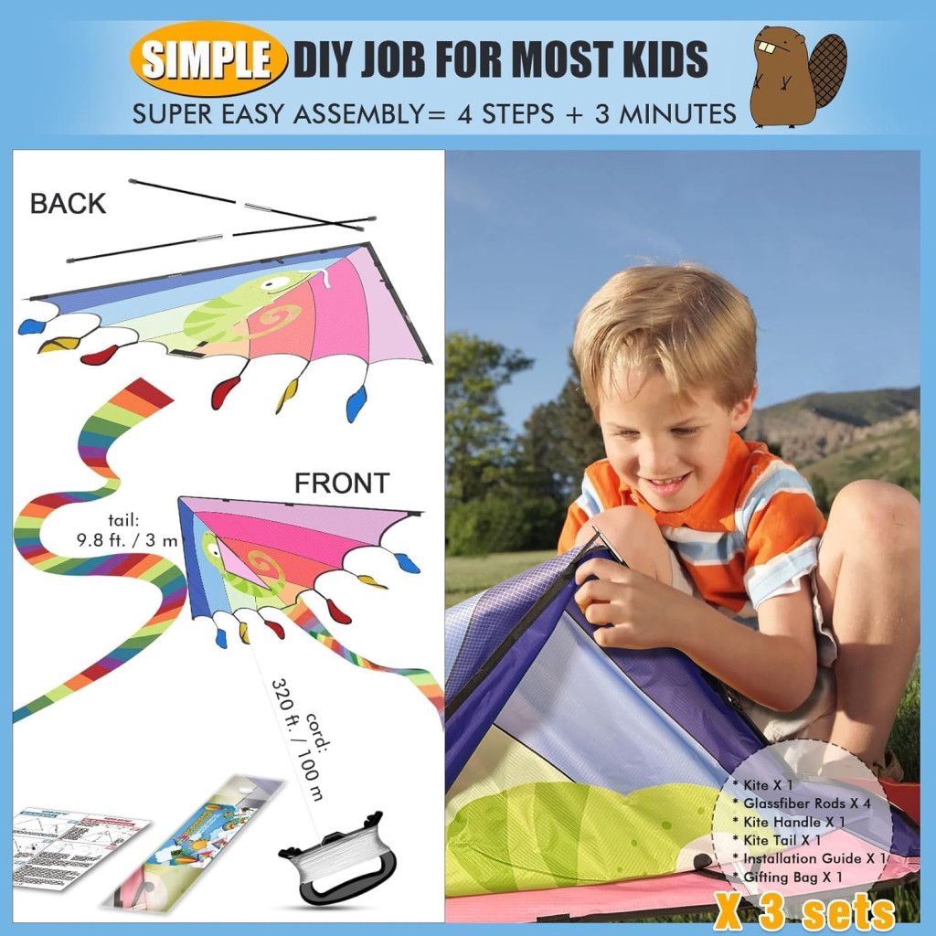 Tento veľký balík delta šarkanov je perfektnou voľbou pre tých, ktorí hľadajú kvalitného, ľahko lietajúceho a odolného šarkana. Pekné vzory Elf, Lizard a Flower, 325-stopová šnúra a jednoduchá montáž ho robia ideálnym na rodinné výlety, festivaly a ako darček. Či už ide o deti alebo dospelých, tento šarkan zaručene prinesie hodiny zábavy vonku, radosť z čerstvého vzduchu a slnka, ako aj nezabudnuteľné spomienky pre celú rodinu.