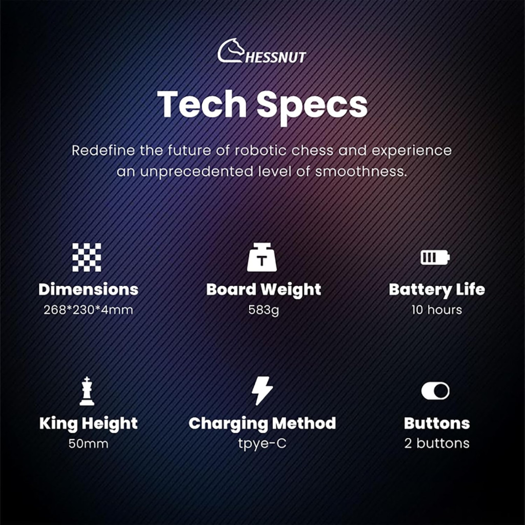 Široká kompatibilita znamená, že môžete hrať so svojimi obľúbenými šachovými aplikáciami alebo používať vlastné aplikácie Chessnut. Cestovné puzdro a prenosná veľkosť robia z tohto zariadenia ideálnu voľbu pre tých, ktorí milujú šach, no nechcú sa vzdať mobility.