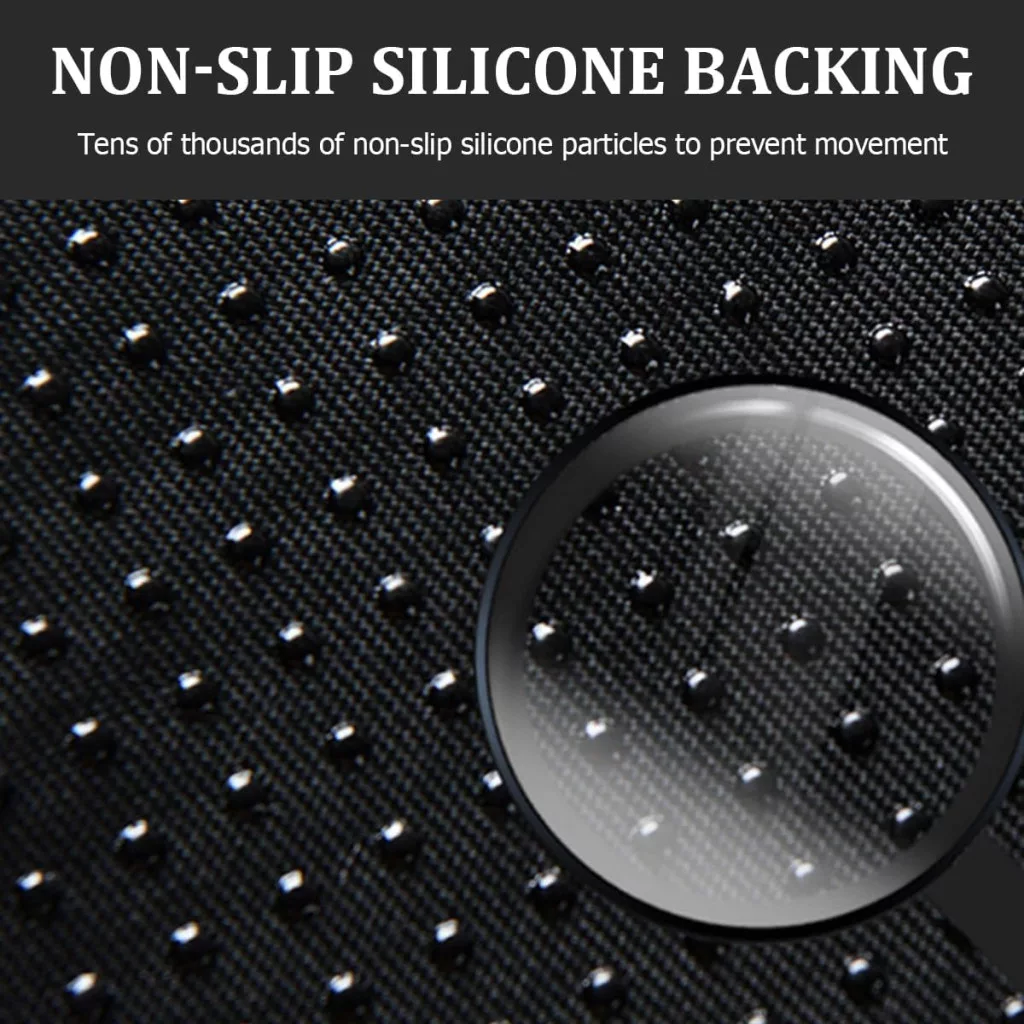 A szilikon csúszásmentes alap biztosítja, hogy a párna még erős fékezéskor vagy göröngyös terepen sem csúszik meg. Ez a megoldás ideális az összes autótípushoz, függetlenül attól, hogy milyen méretű vagy alakú a középkonzol.