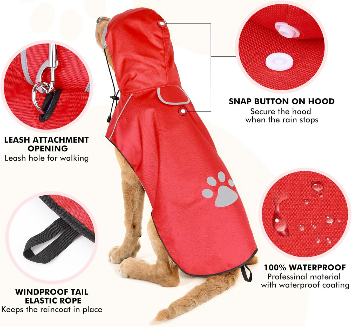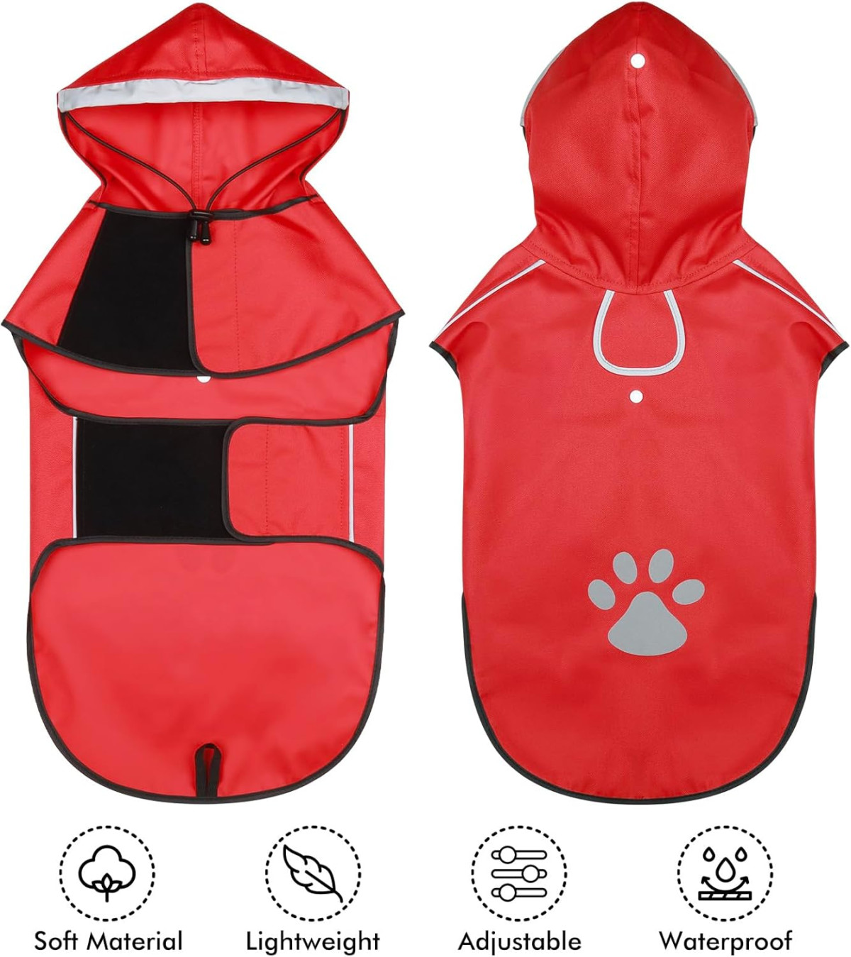 Ultraľahký materiál a ergonomický dizajn zaručujú, že sa váš pes môže voľne pohybovať, hrať a dokonca aj močiť bez toho, aby ste museli dávať pršiplášť dolu. Nastaviteľné zapínanie na suchý zips a reflexná kapucňa zaisťujú dokonalé prispôsobenie a maximálne pohodlie. Jednoduchá údržba a rýchle schnutie znamenajú, že pršiplášť je vždy pripravený na ďalšie dobrodružstvo.