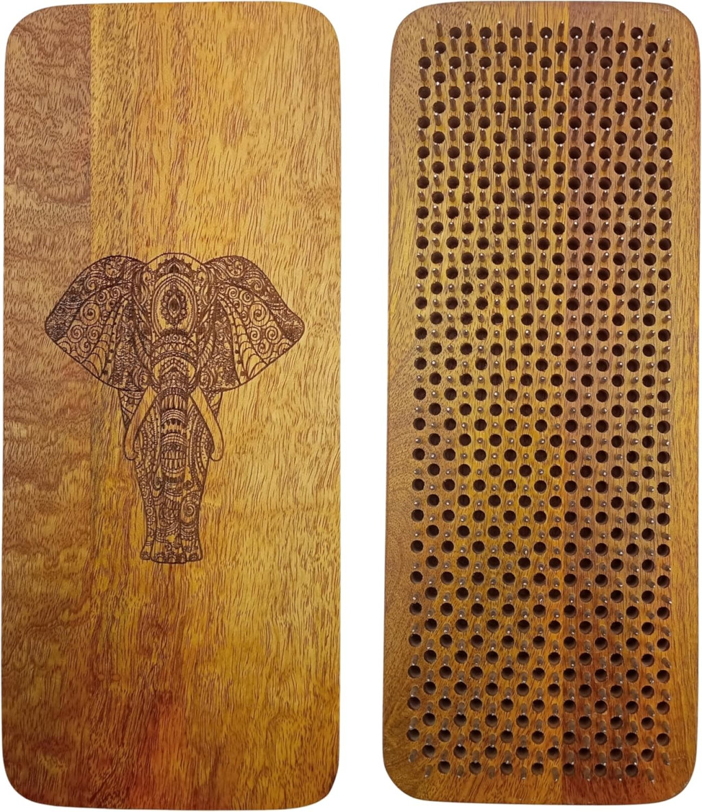 A SattesGrün Sadhu tábla a hagyományos kézműves készítés és a természetes esztétika tökéletes kombinációja. Ez a különleges jóga- és meditációs eszköz fenntartható mangófából készült, galvanizált acél szögekkel ellátva. Az elefánt motívum faragása minden táblát egyedi műalkotássá tesz, amely szimbolizálja az erőt, a nyugalmat és a bölcsességet.