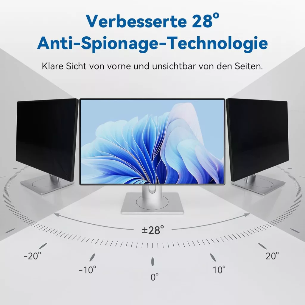 A termék egyedülálló kombinációt kínál: magas szintű adatvédelem, kék fény szűrés, tükröződésmentes technológia és kristálytiszta képminőség. Az innovatív mikrolamella technológia csökkenti a nézési szöget mindössze ±28°-ra, így biztosítva, hogy csak az előtt ülő személy láthatja a képernyő tartalmát.