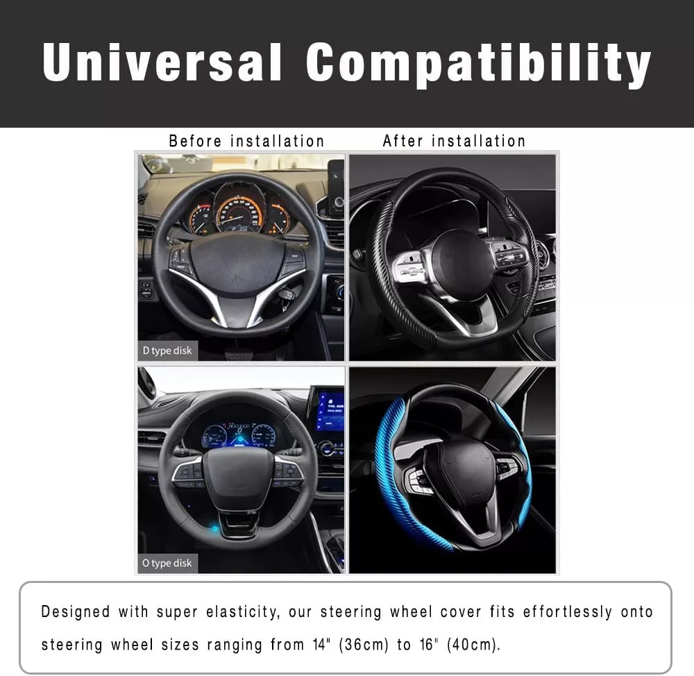 BROVACS Poťah na volant s karbónovým vzorom, univerzálny, protišmykový, tvar O/D, 35,6 – 40,6 cm, svetlohnedý