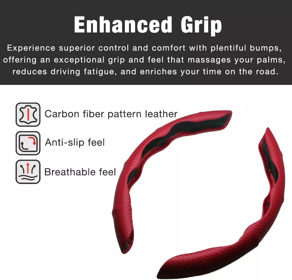 Ez a kormánykormány borító tökéletes választás minden autótípushoz, legyen szó személyautóról, SUV-ról vagy kisebb teherautóról. Ideális azok számára, akik hosszú utakat tesznek meg, mivel a szénszálas minta és a puha PU bőr felület jelentősen csökkenti a kéz fáradtságát. A piros szín elegáns megjelenést kölcsönöz az autó belsejének, miközben a csúszásmentes felület biztosítja a biztonságos vezetést minden körülmény között.