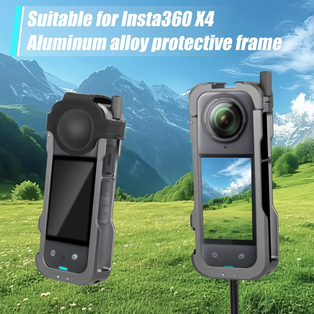 A keret univerzális kialakítása lehetővé teszi, hogy különböző méretű és típusú Insta360 kamerákkal használja. Az alumínium váz biztonságosan tartja a kamerát, miközben hozzáférést biztosít minden gombhoz, csatlakozóhoz és funkcióhoz. A szilikon lencsevédő tökéletesen illeszkedik a kamera lencséjéhez, megvédve azt a karcolásoktól és sérülésektől.