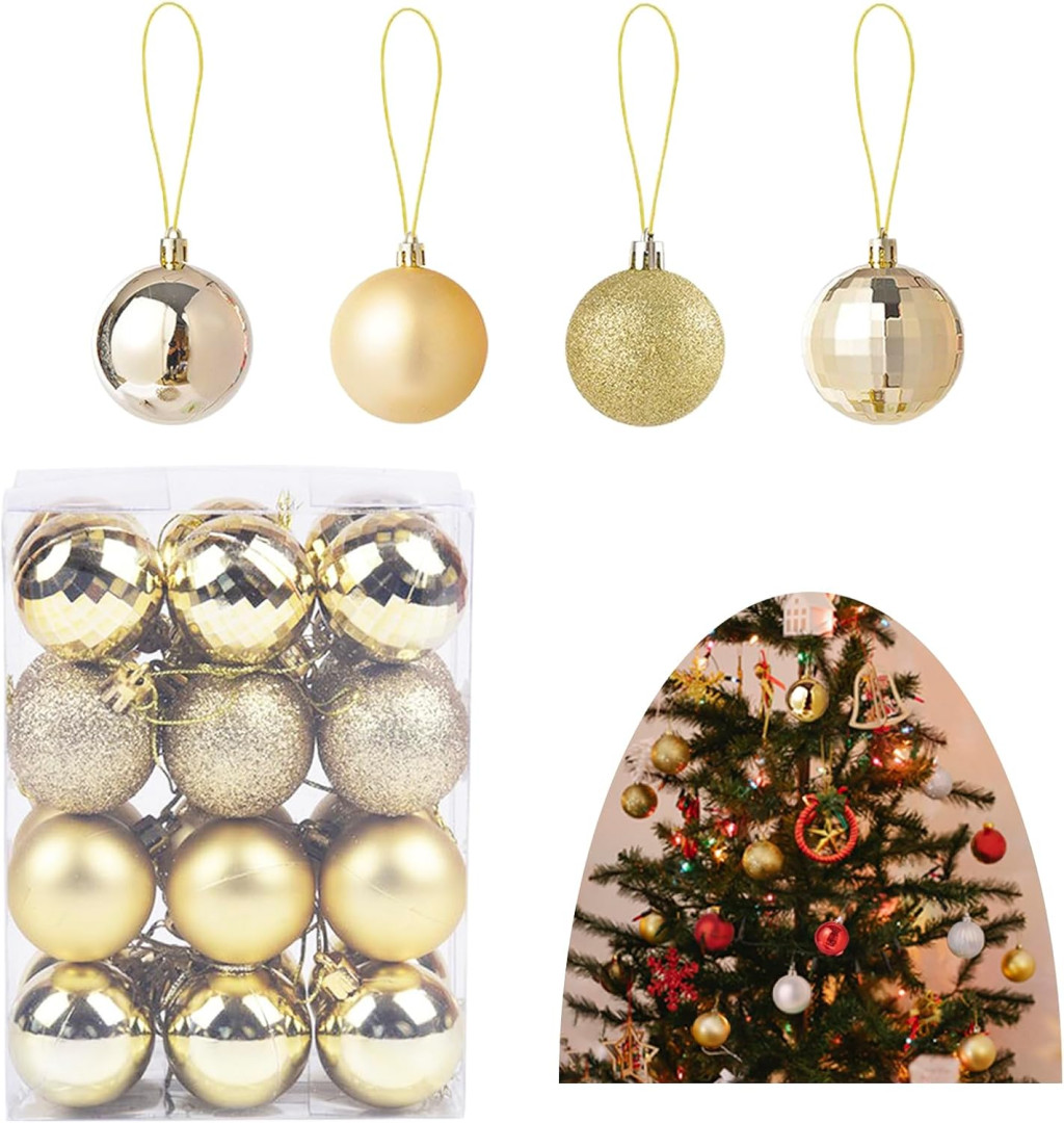 Vytvorte si doma kúzelnú vianočnú atmosféru s touto sadou gúľ prémiovej kvality! V 24-dielnej kolekcii nájdete štyri rôzne štýly gúľ, pričom z každého je v balení 6 kusov. Elegantné červené, strieborné a zlaté farby tvoria dokonalú harmóniu pre vytvorenie tej najkrajšej vianočnej výzdoby. Tieto 4 cm gule sú ideálne na zdobenie veľkých aj malých vianočných stromčekov a sú zaručene bezpečné pre deti aj domácich miláčikov.