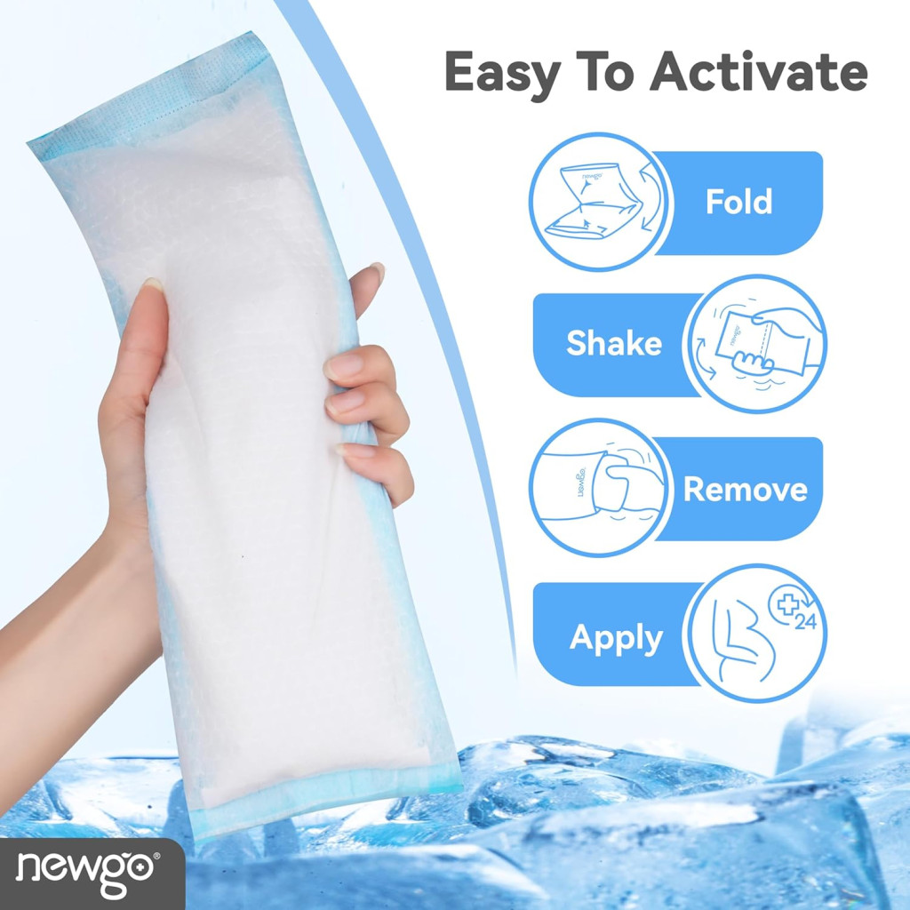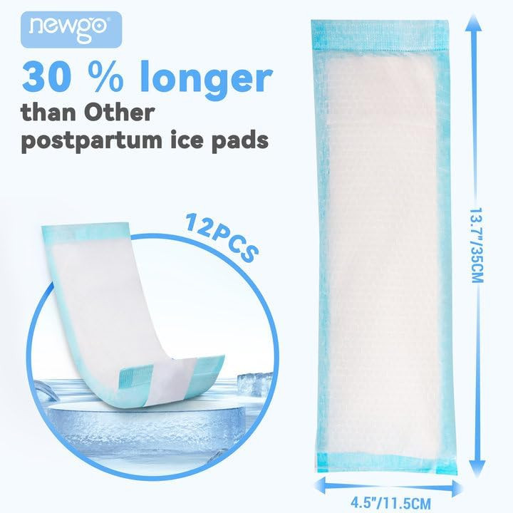 Chladiace vložky po pôrode NEWGO sú profesionálnym riešením vyvinutým pre moderné mamičky na zvládanie popôrodnej bolesti a nepohodlia. Toto balenie obsahuje 12 kusov jednotlivo balených vložiek s rozmermi 13,7" x 4,5", ktoré možno okamžite aktivovať a poskytujú chladivú terapiu až na 20 minút. Ide o plne jednorazové, hygienické riešenie, ktoré sa ľahko zmestí do nemocničnej alebo pracovnej tašky.