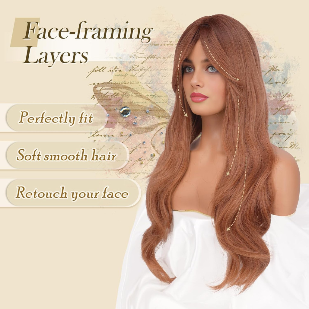 Tmavo-oranžová parochňa FESHFEN je moderný, trendy účes, ktorý dokonale kombinuje dlhé vrstvy a elegantnú ofinu. Táto 26-palcová dlhá parochňa je vyrobená z prirodzene vyzerajúcich syntetických vlákien, ktoré poskytujú hladký a lesklý povrch. Nastaviteľný popruh a priedušná sieťovaná konštrukcia zaručujú pohodlné nosenie po celý deň, bez ohľadu na veľkosť hlavy. Ideálna voľba pre tých, ktorí chcú zmeniť svoj vzhľad bez toho, aby sa dlhodobo zaviazali k novému účesu.