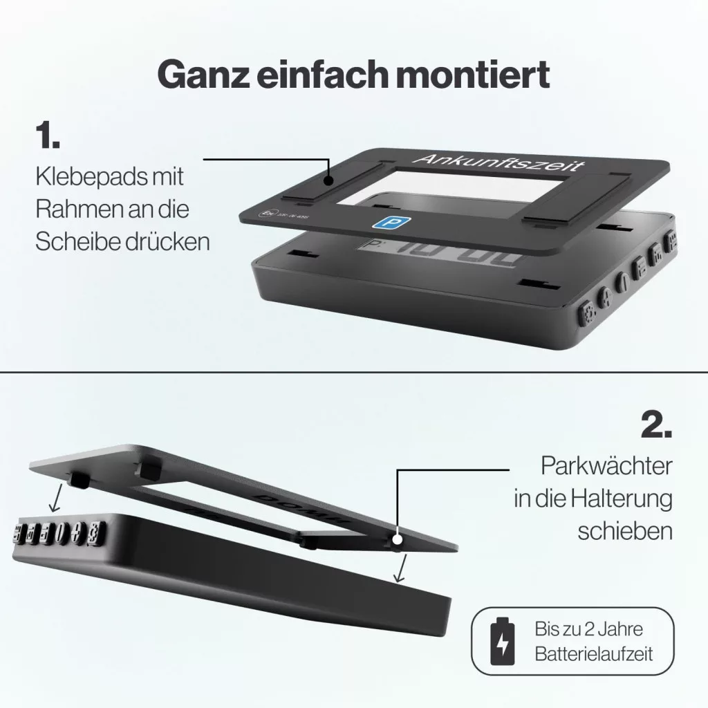 Používaním zariadenia sa môžete vyhnúť pokutám za parkovanie, ktoré môžu dlhodobo predstavovať značné náklady. Jednoducho ho nainštalujte na čelné sklo a Parkwächter V2 sa postará o nastavenie správneho času parkovania.