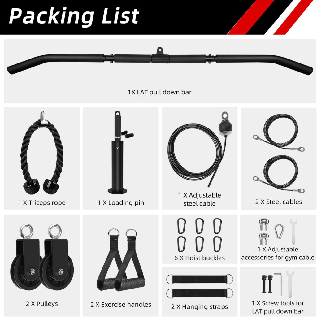 LFJ Fitness Lat Pull je ideálnou voľbou pre tých, ktorí chcú svoju domácu posilňovňu vybaviť náčiním profesionálnej kvality. Tri vymeniteľné úchyty umožňujú cielený tréning takmer každej svalovej skupiny, od chrbta až po triceps. Robustná oceľová konštrukcia a 360° otočná kladka zaručujú dlhú životnosť a bezhlučný chod.