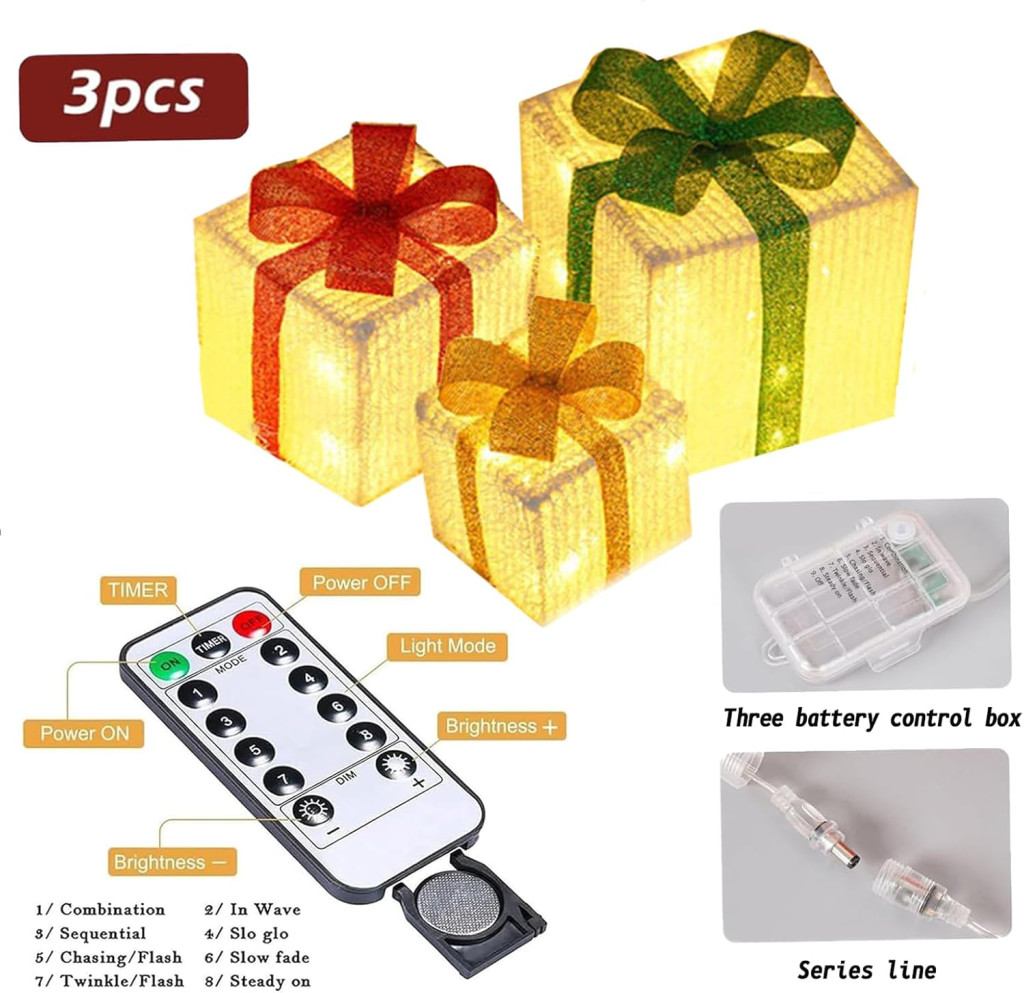 3 LED dekoratívne darčekové krabičky na Vianoce - S diaľkovým ovládaním a časovačom
