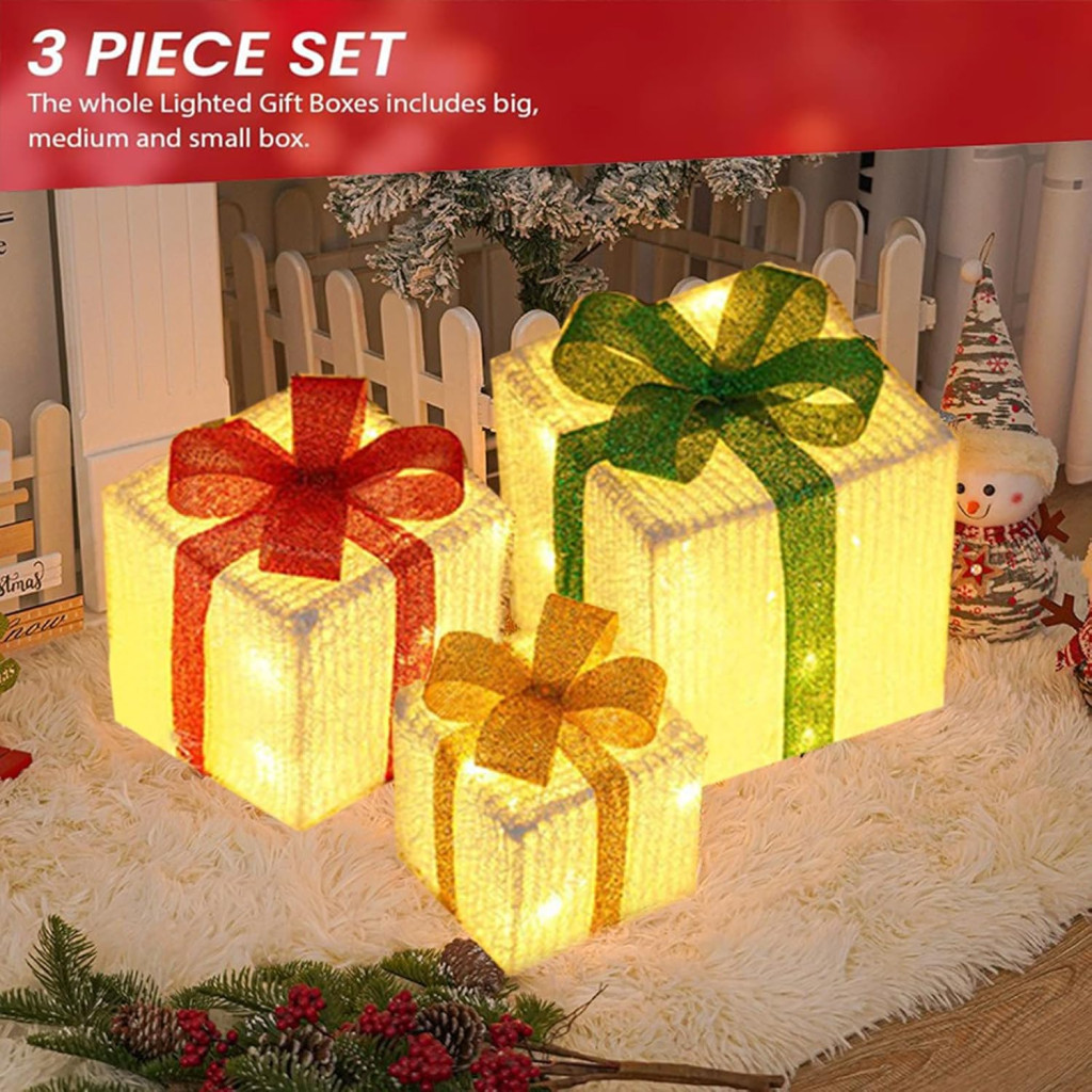 3-dielna sada LED darčekových krabíc Weiongppy je dokonalou vianočnou dekoráciou: