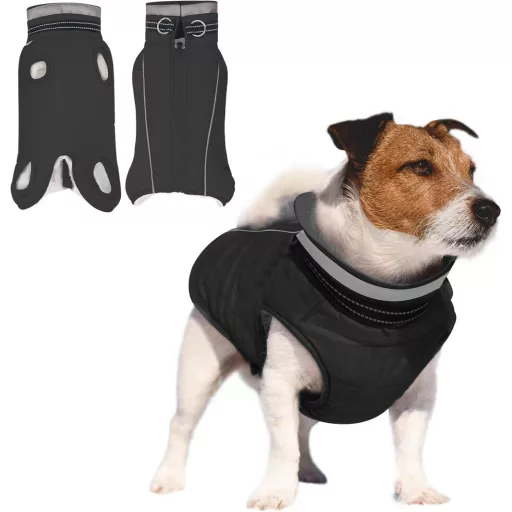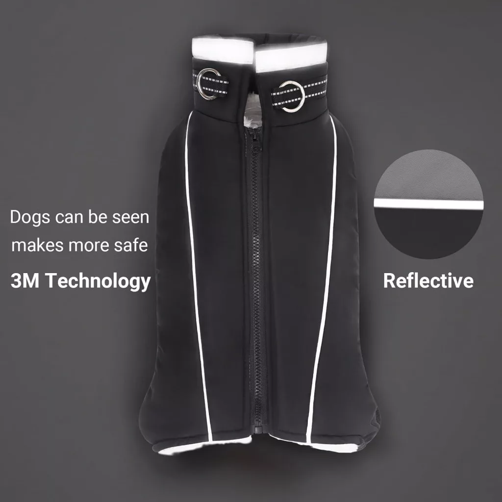 A kabát nem csak praktikus, hanem biztonságos is. Az integrált reflektív csíkok biztosítják, hogy kutyája jól látható marad az esti és éjszakai sétákon, sötétben vagy rossz látási viszonyok között. A cipzáros kialakítás könnyűvé teszi a fel- és levételt, míg a mellkasi szíj és a kutyasétáltatási gyűrű extra stabilitást és kontrollt nyújt.