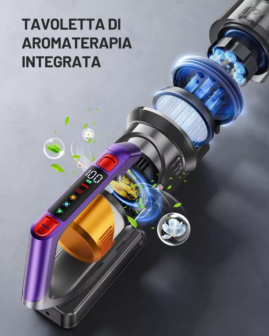 - Inteligentný LED displej: Informácie v reálnom čase o stave batérie a nastaveniach sacieho výkonu