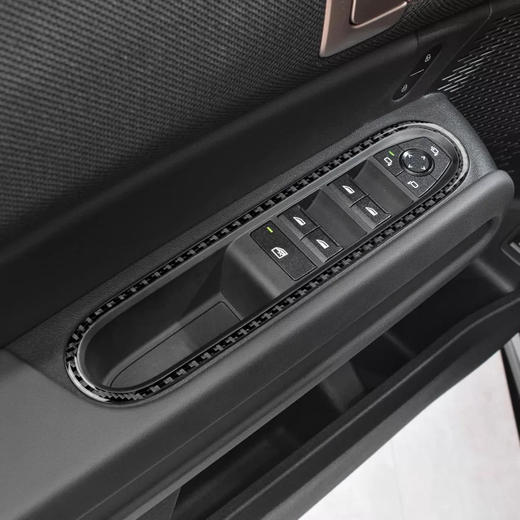 Táto karbónová nálepka sa dá v interiéri auta použiť na viacerých miestach. Kryt ovládacieho panela dverí je jednou z najdôležitejších častí, kde nálepka chráni pôvodný povrch a zároveň dodáva prémiový vzhľad. Kryt konzoly ovládania okien je taktiež skvelým miestom na aplikáciu, keďže tieto plochy sú často vystavené kontaktu s rukami a môžu sa ľahko poškriabať.