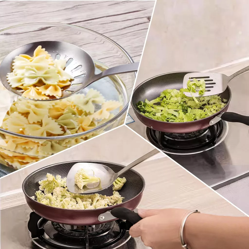 Súprava špachtle a wok naberačky FJNATINH je profesionálne kuchynské náčinie, ktoré je ideálne na varenie vo woku, vyprážanie a na domáce či komerčné využitie. Táto 2-dielna sada je vyrobená z nerezovej ocele, čo zaručuje dlhú životnosť a vynikajúci výkon. Náčinie s drevenými rúčkami je nielen praktické, ale aj estetické a chráni ruky pred teplom.