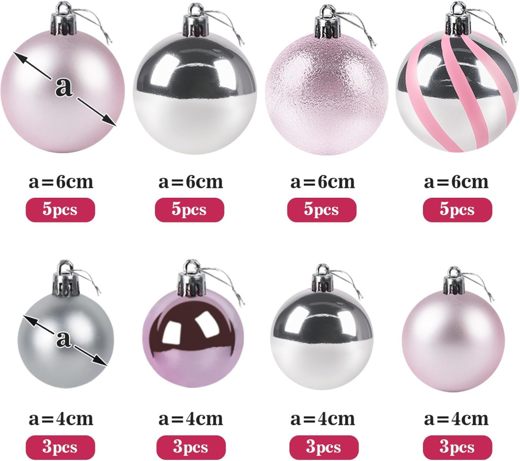 Agoer 60 darabos rózsaszín karácsonyi gömb szett, csillogó műanyag dekoráció