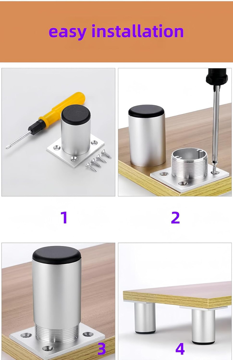 ABS podstavec chráni podlahu pred poškriabaním a poškodením a hliníkový materiál nehrdzavie ani vo vlhkom prostredí. Ideálne pre TV skrinky, kúpeľňový nábytok, kuchynské skrinky a DIY projekty. Balenie obsahuje 16 skrutiek z nehrdzavejúcej ocele, čo postačuje na bezpečné upevnenie všetkých nôh.