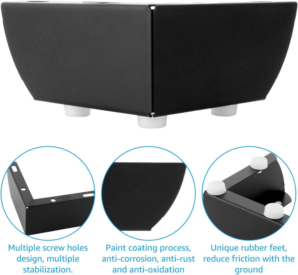 A fekete szín elegáns és sokoldalú, amely szinte bármilyen bútor stílushoz illeszkedik. A 9,5 cm magas lábak tökéletes arányokat biztosítanak, és a 600 kg-os terhelhetőség garantálja, hogy még a nehéz bútorok is biztonságosan támogatottak lesznek.