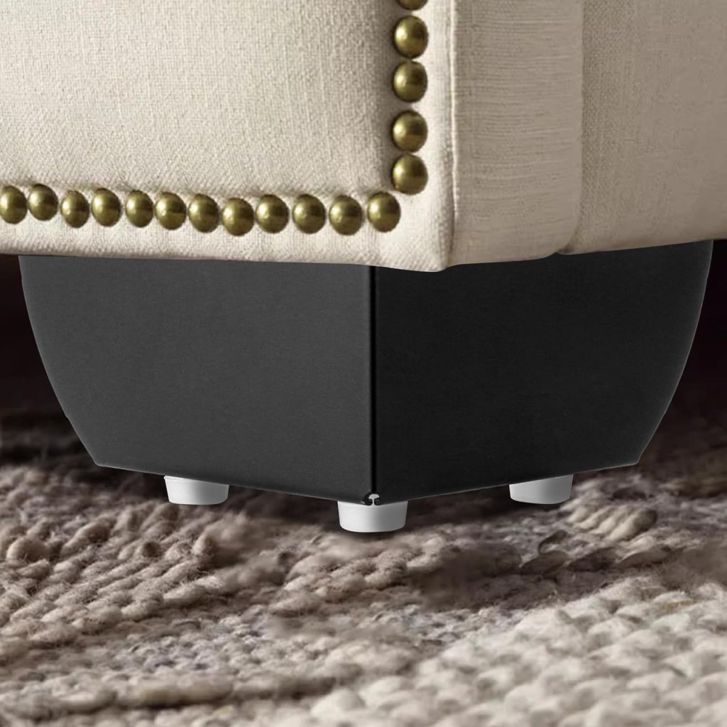 A fehér gumibetét nem csak esztétikus, hanem praktikus is – védi a padlót a karcolásoktól és csökkenti a bútor mozgatásakor keletkező zajt. Az erősített háromszög szerkezet biztosítja, hogy még a legnehezebbek bútorok is biztonságosan támogatottak lesznek.