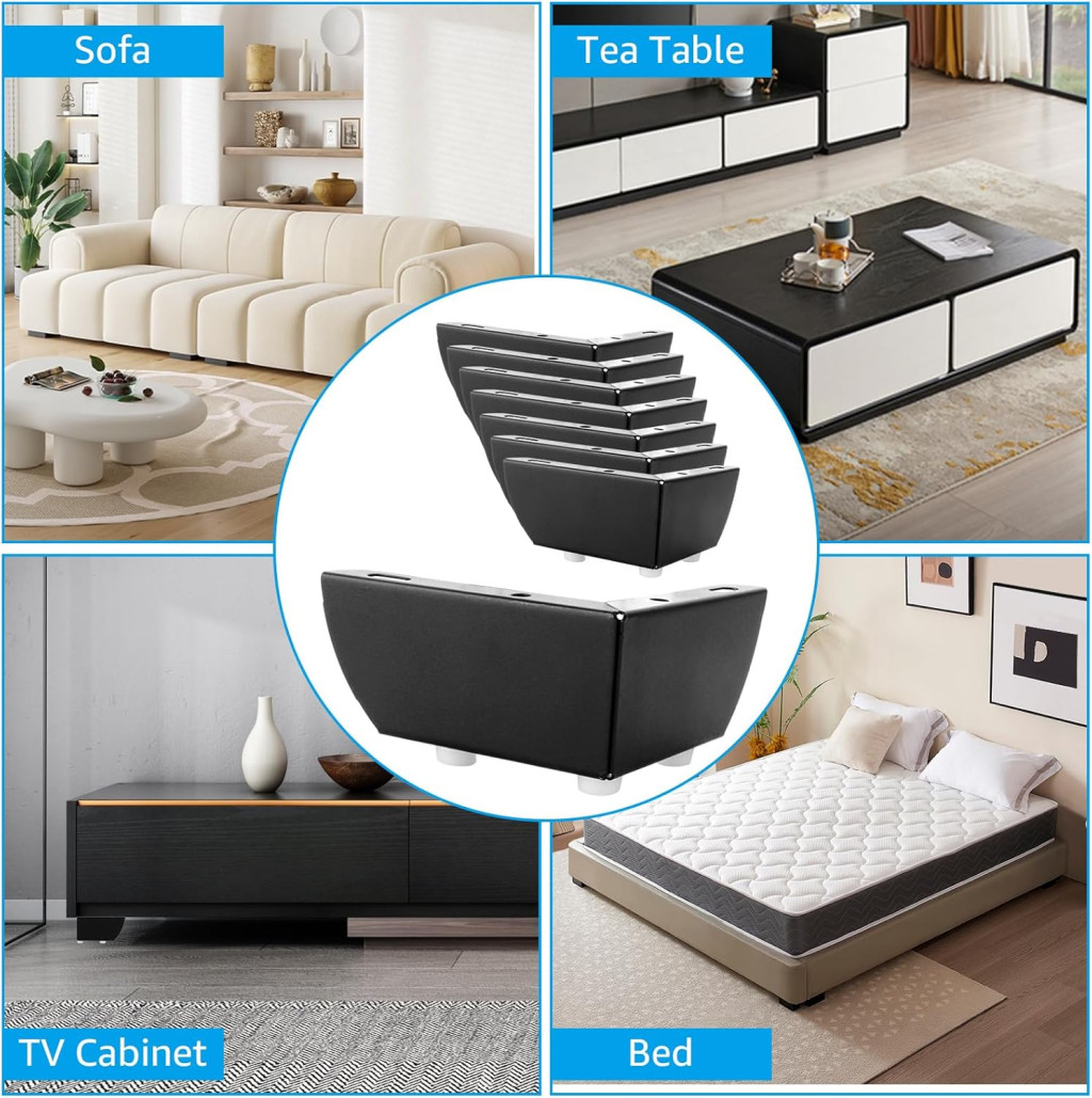 Nábytkové nohy majú univerzálne montážne body, ktoré sú kompatibilné s takmer všetkými typmi nábytku. Balenie obsahuje 32 skrutiek, čo stačí na bezpečné upevnenie všetkých 8 nôh. Inštalácia je jednoduchá a rýchla, nie sú potrebné žiadne špeciálne nástroje ani odborné znalosti.