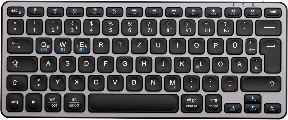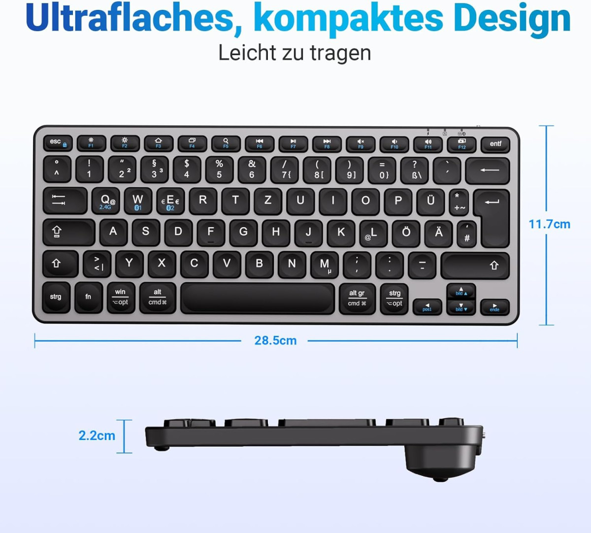 Bluetooth klávesnica iClever, bezdrôtová nemecká QWERTZ klávesnica, nabíjateľná, prepínanie medzi 3 zariadeniami, kompatibilná s MacBook Pro/Air, iMac