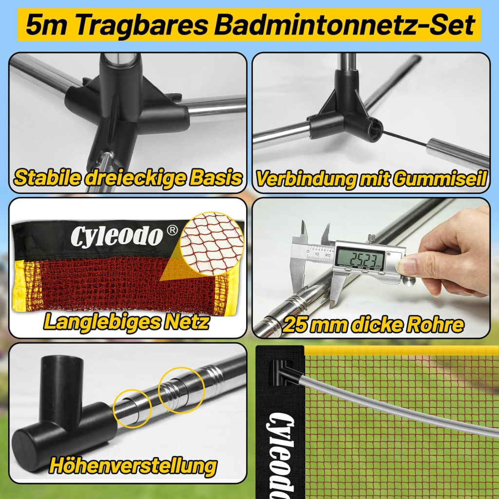 Cyleodo hordozható tollaslabda háló szett 5m magasságállítható pikklibál röplabda