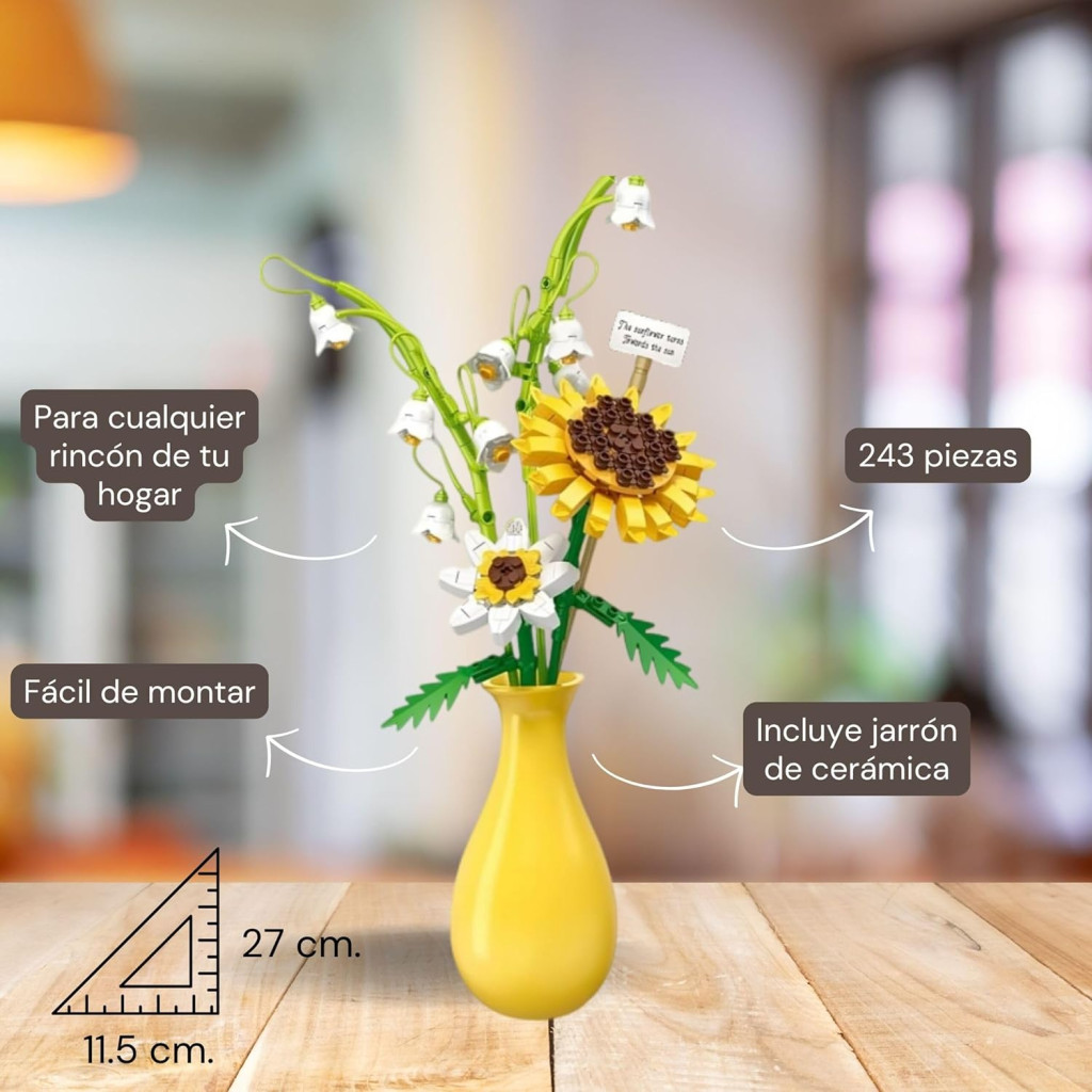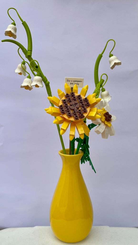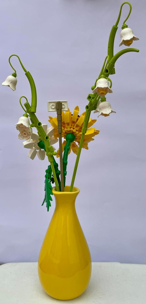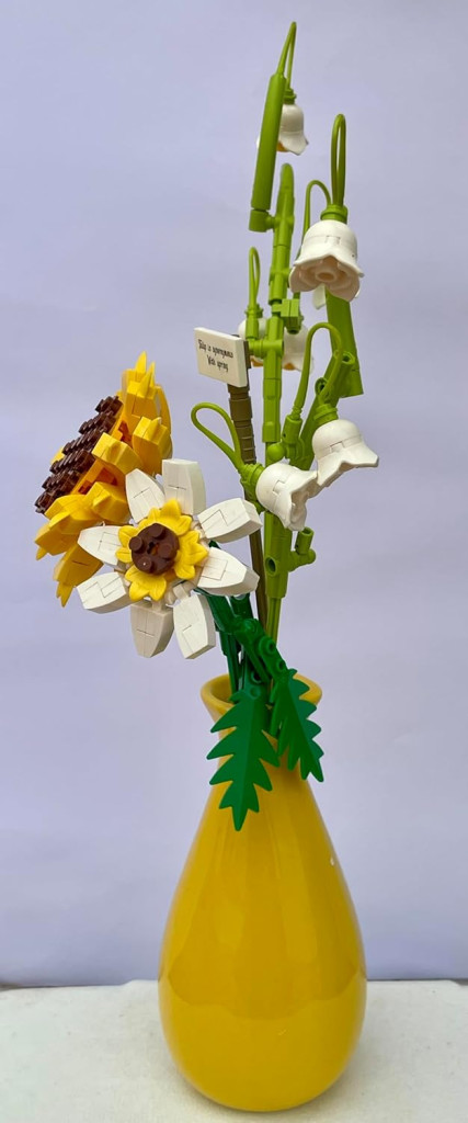 Umelé kvety na dekoráciu domova s vázou sú produktom, ktorý spája estetiku, funkčnosť a zábavu. 243-dielna stavebnica zaručuje, že proces zostavovania bude rovnako príjemný ako výsledok. Dodáva sa spolu s keramickou vázou, takže sa dá okamžite použiť a nikdy sa oň netreba starať.