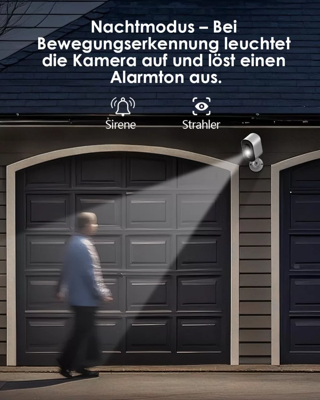 Kamera disponuje zabudovanými infračervenými LED diódami a externým bielym svetlom, ktoré poskytuje čistý obraz až do vzdialenosti 12 metrov v úplnej tme. Technológia farebného nočného videnia umožňuje rozpoznávanie detailov aj pri slabom osvetlení. Funkcia inteligentnej sirény a blikajúceho bieleho svetla pôsobí ako účinný odstrašujúci prostriedok proti neželaným návštevníkom.