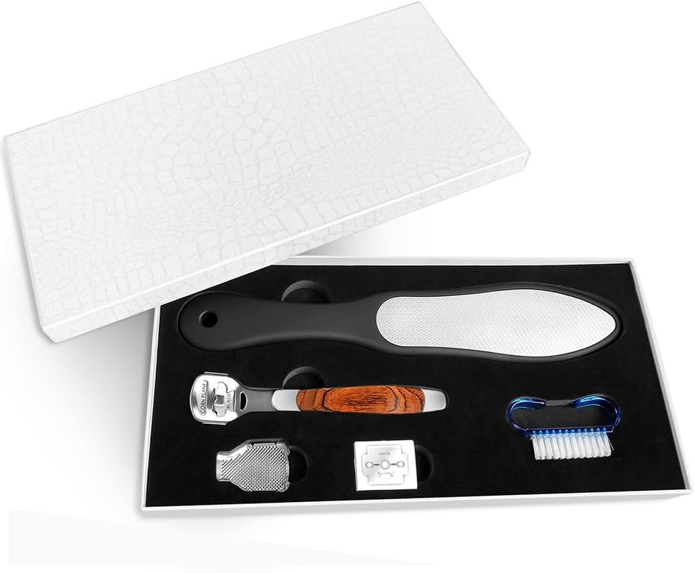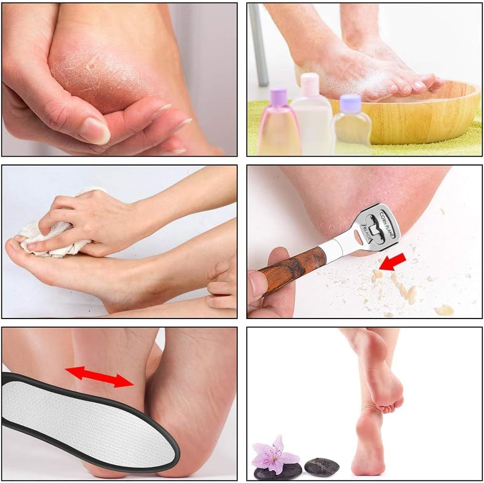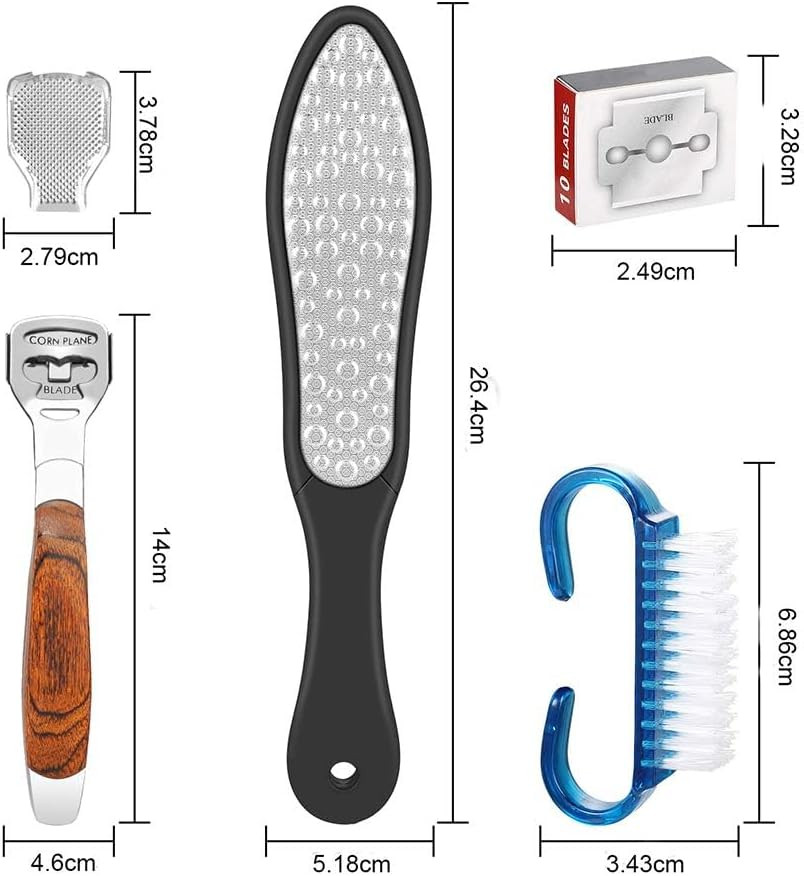 Táto komplexná súprava na starostlivosť o nohy obsahuje všetko potrebné pre pedikúru v pohodlí domova. Nástroje vyrobené z nehrdzavejúcej ocele zaručujú odolnosť a hygienu. Ergonomický dizajn zabezpečuje pohodlné používanie, zatiaľ čo odolnosť voči vode a korózii zaručuje dlhú životnosť. Možno ju použiť na suché aj mokré chodidlá, takže je vhodná aj po sprchovaní.