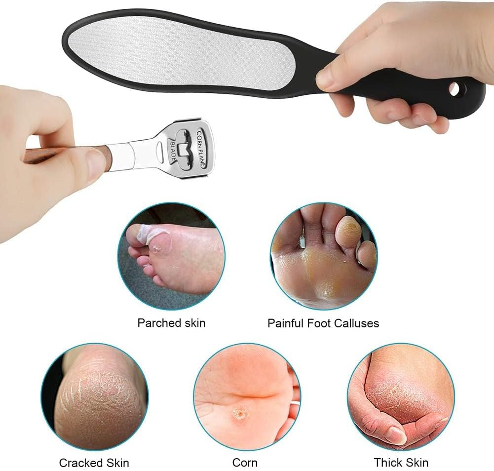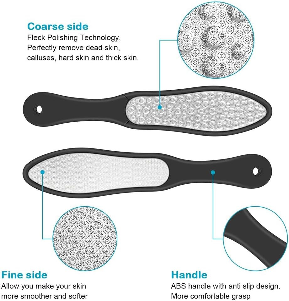 - Obojstranný pilník na nohy: Hrubá strana na odstránenie odolných kurích ôk a stvrdnutej kože, jemná strana na citlivé oblasti
