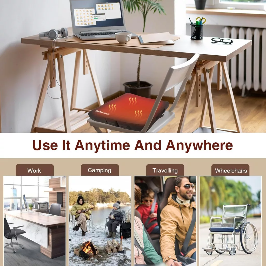 Tento vyhrievaný podsedák je mimoriadne všestranný a využiteľný v mnohých situáciách. Je dokonalý na kancelárske stoličky počas dlhých pracovných dní a na štadióne vám zabezpečí pohodlie počas zimných športových podujatí. Pri kempovaní a rybárčení je ideálnym spoločníkom na udržanie tepla a komfortu. Doma ho môžete použiť v obývačke alebo spálni, aby vám poskytol príjemné teplo počas chladných zimných dní.