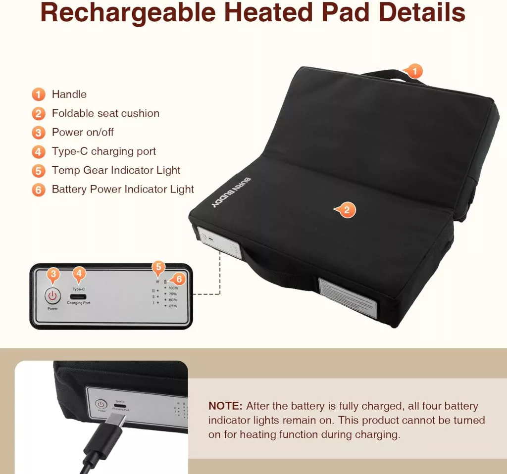 Tento produkt je perfektnou voľbou pre športových fanúšikov, kemperov, rybárov a každého, kto v zime vykonáva vonkajšie aktivity. Aj kancelárski pracovníci môžu oceniť extra pohodlie počas dlhých pracovných dní. Ktokoľvek, kto oceňuje teplo a pohodlie v chladnom počasí, bude s týmto vyhrievaným podsedákom určite spokojný.