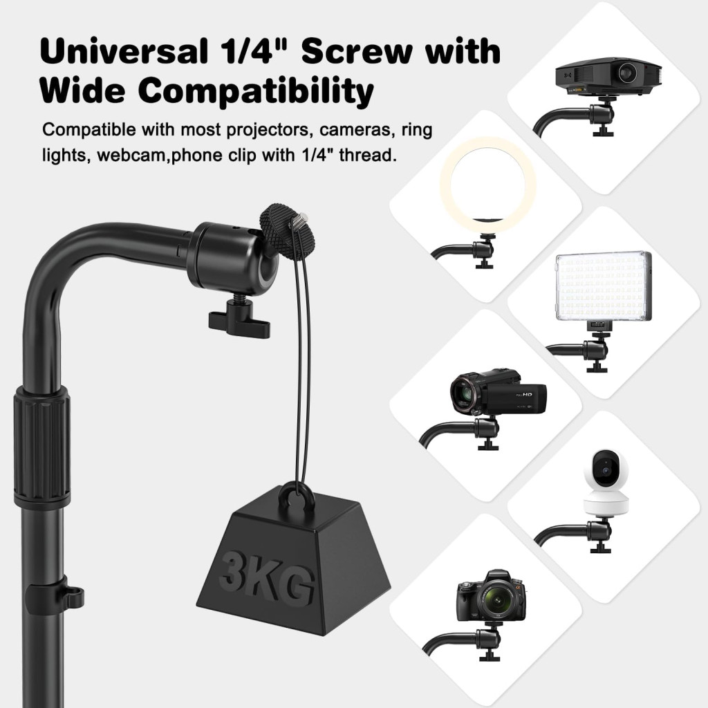 Jubor Stojan na projektor, 80-120 cm, výškovo nastaviteľný stropný držiak otočný o 360°