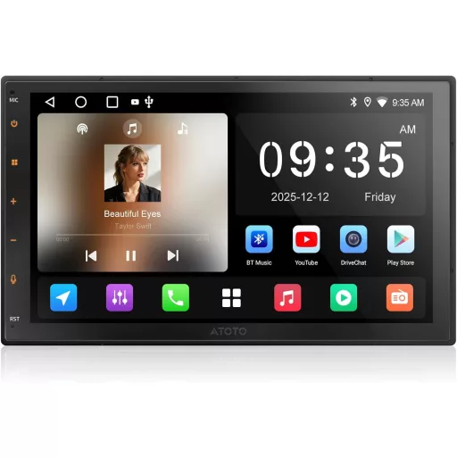 ATOTOZONE A5L Dupla DIN Android Autórádió GPS Navigációval, Wireless CarPlay, 7" Érintőképernyő