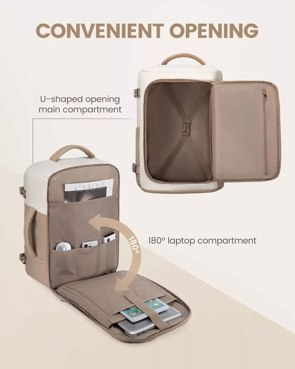 • Otváranie v tvare U: Úplné otvorenie umožňuje jednoduché balenie a hladké prechody bezpečnostnými kontrolami